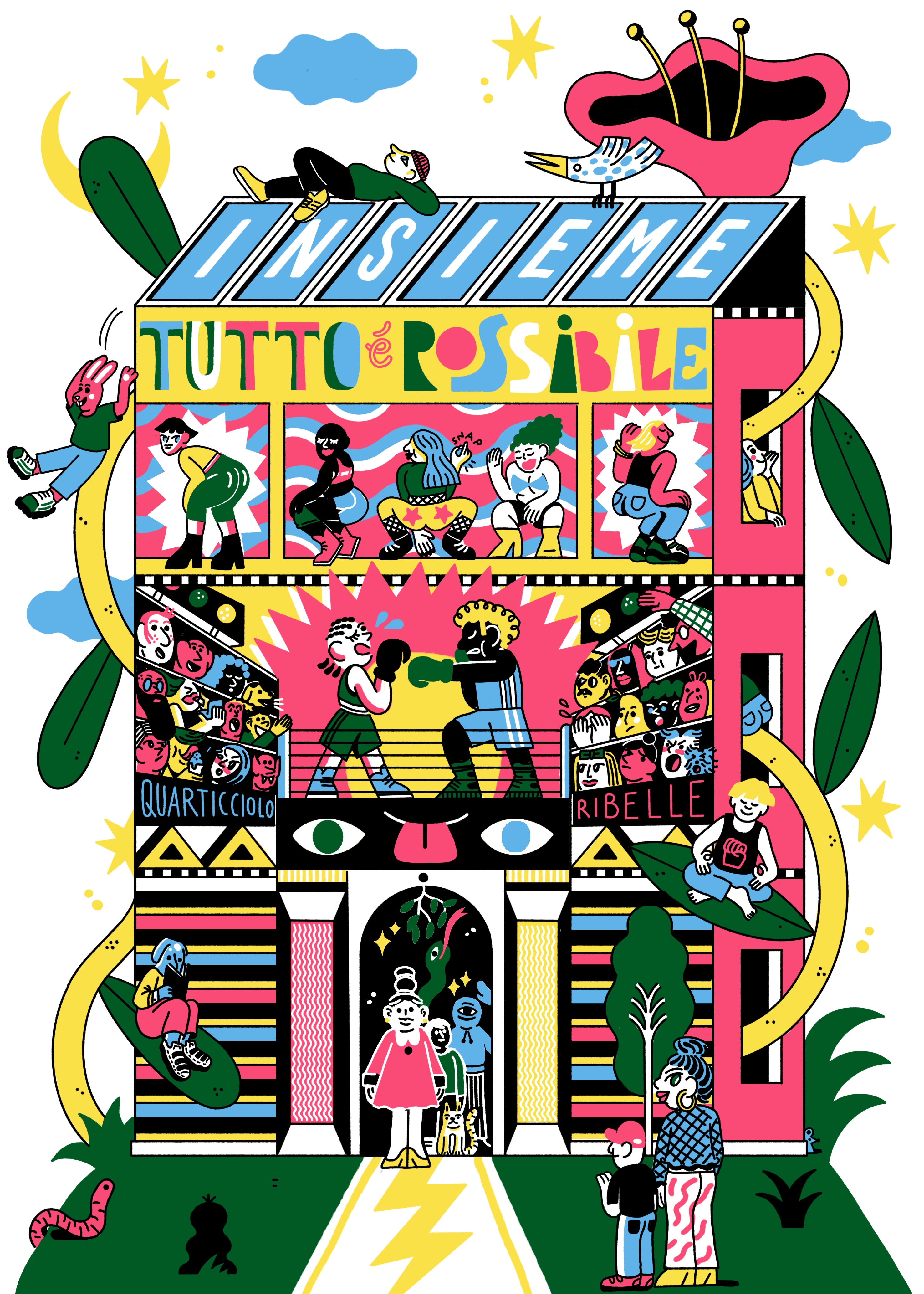 6 colour silkscreen printo for Quarticciolo Ribelle crowdfunding campaign.
