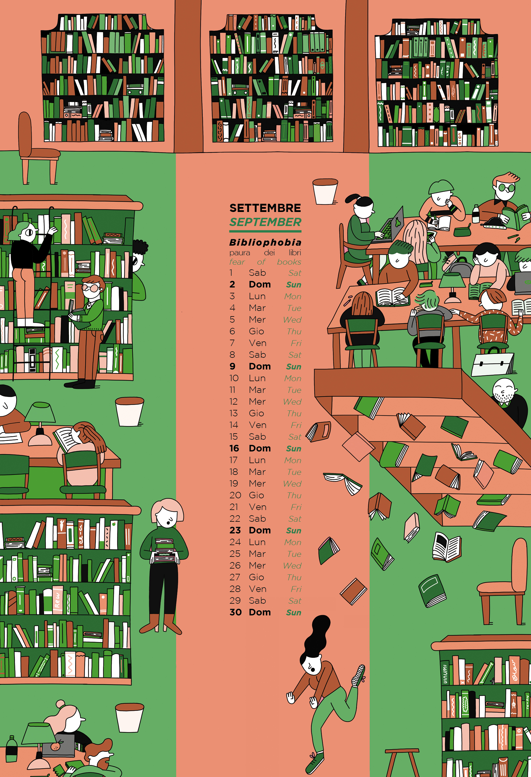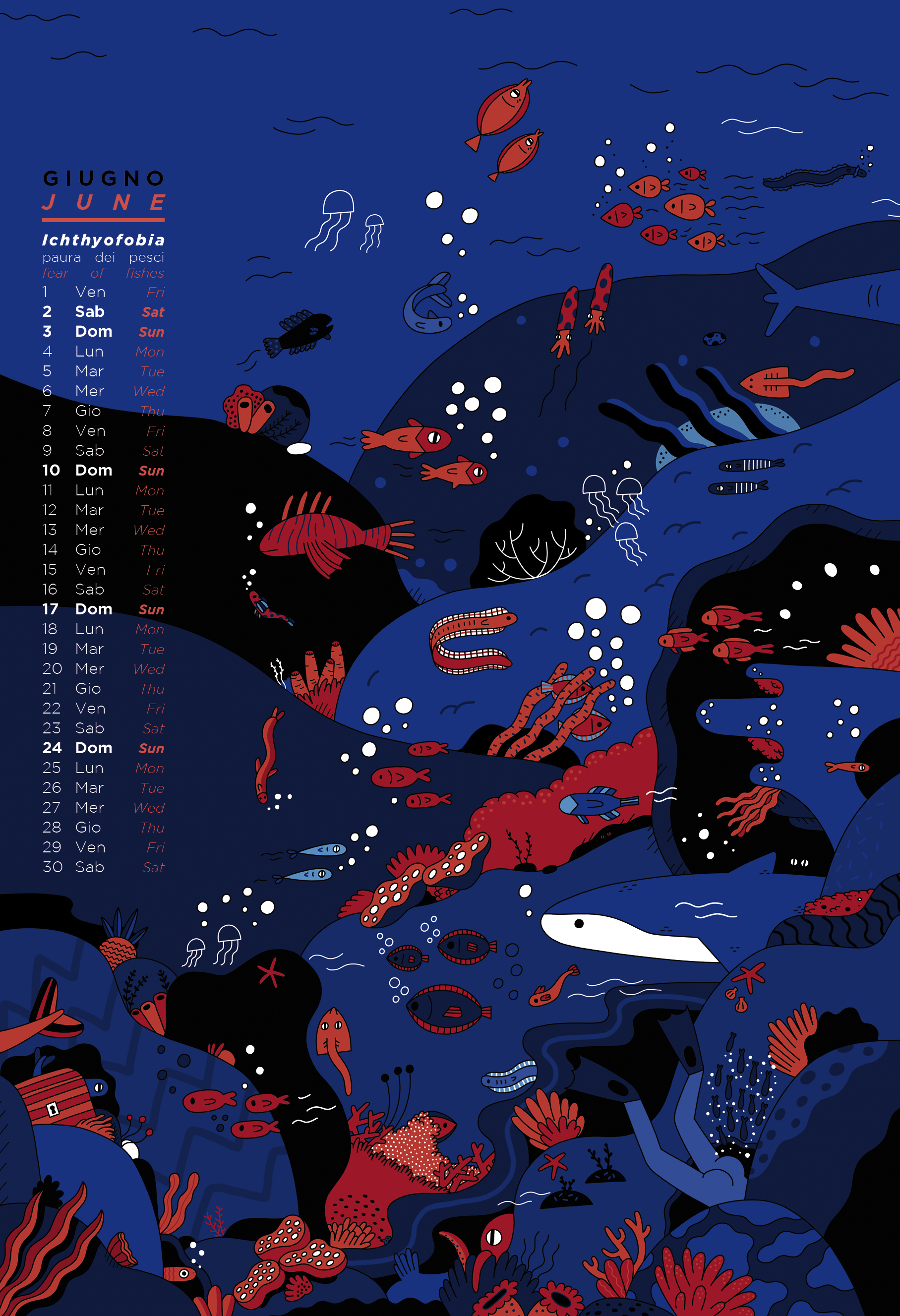 In 2018 I chose the most uncommon and/or funny fears the human being can explore, and illustrated them in order to make a calendar.
